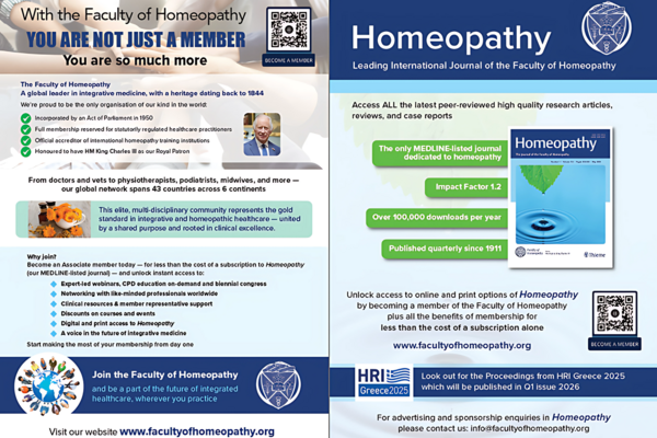 A highly regarded and globally recognised leader in the practice, education, and research of homeopathy and integrative healthcare. Founded in 1844, and incorporated by an Act of Parliament in 1950, the Faculty of Homeopathy has long been recognised as the preeminent membership organisation for statutorily regulated healthcare professionals who integrate homeopathy within their practice and is also known for its two popular and groundbreaking publications – the Homeopathy journal, and Simile magazine.