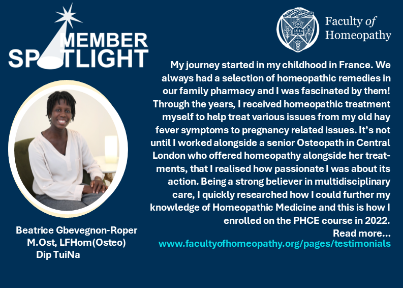 My journey started in my childhood in France. We always had a selection of homeopathic remedies in our family pharmacy and I was fascinated by them! Through the years, I received homeopathic treatment myself to help treat various issues from my old hay fever symptoms to pregnancy related issues. It’s not until I worked alongside a senior Osteopath in Central London who offered homeopathy alongside her treatments, that I realised how passionate I was about its action. Being a strong believer in multidisciplinary care, I quickly researched how I could further my knowledge of Homeopathic Medicine and this is how I enrolled on the PHCE course in 2022.