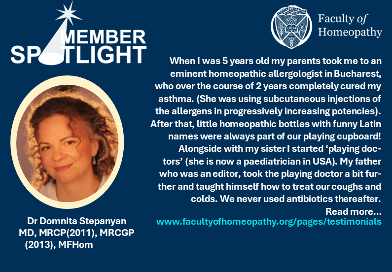 When I was 5 years old my parents took me to an eminent homeopathic allergologist in Bucharest, who over the course of 2 years completely cured my asthma. (She was using subcutaneous injections of the allergens in progressively increasing potencies). After that, little homeopathic bottles with funny Latin names were always part of our playing cupboard! Alongside with my sister I started ‘playing doctors’ (she is now a paediatrician in USA). My father who was an editor, took the playing doctor a bit further and taught himself how to treat our coughs and colds. We never used antibiotics thereafter.