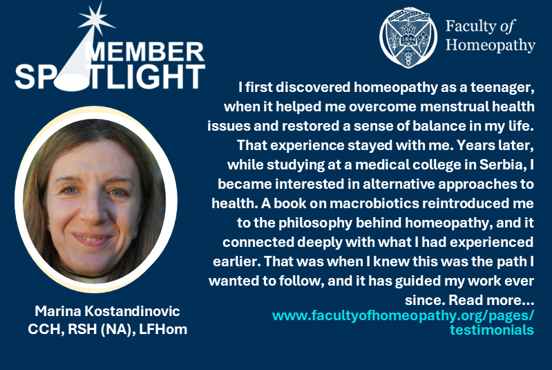 I first discovered homeopathy as a teenager, when it helped me overcome menstrual health issues and restored a sense of balance in my life. That experience stayed with me. Years later, while studying at a medical college in Serbia, I became interested in alternative approaches to health. A book on macrobiotics reintroduced me to the philosophy behind homeopathy, and it connected deeply with what I had experienced earlier. That was when I knew this was the path I wanted to follow, and it has guided my work ever since.